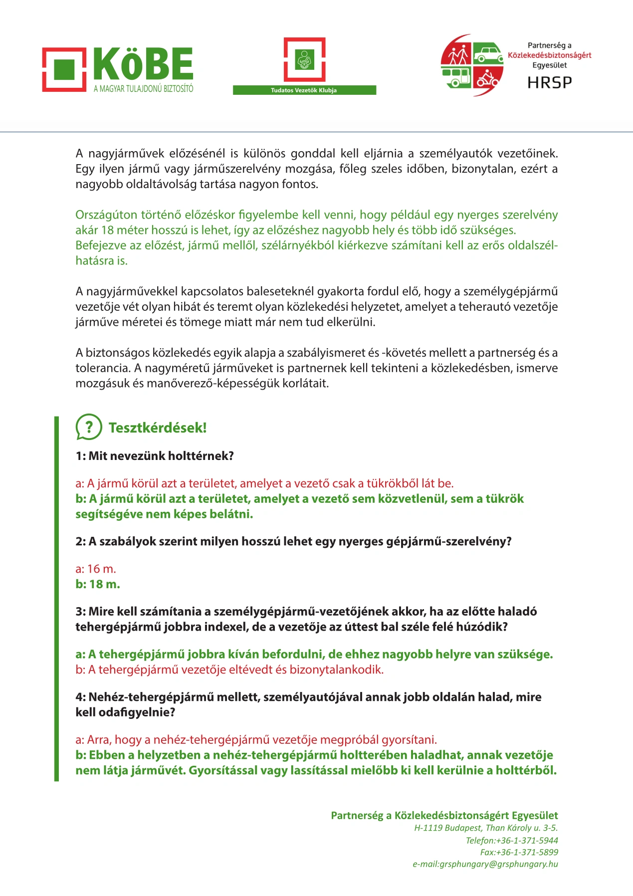 Évente tizenkétszer, minden hónapban gondolkodásra késztetjük azokat a gépjárművezetőket, akik kötelező gépjármű-felelősségbiztosításukat a KöBE-nél kötötték meg és vállalták, hogy részt vesznek a Tudatos Vezető programban, azaz, hogy minden hónapban kitöltenek egy közlekedésbiztonsággal és közlekedési szabályokkal kapcsolatos tesztet.